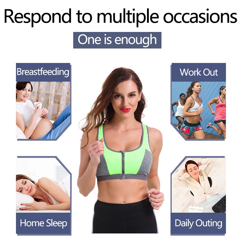 - Sports Bras feature: High Elasitc,Breathable,Quick Dry,unremovable pads,adjustable zipper