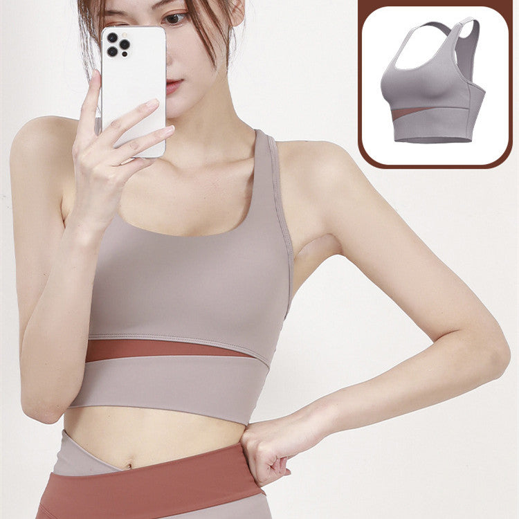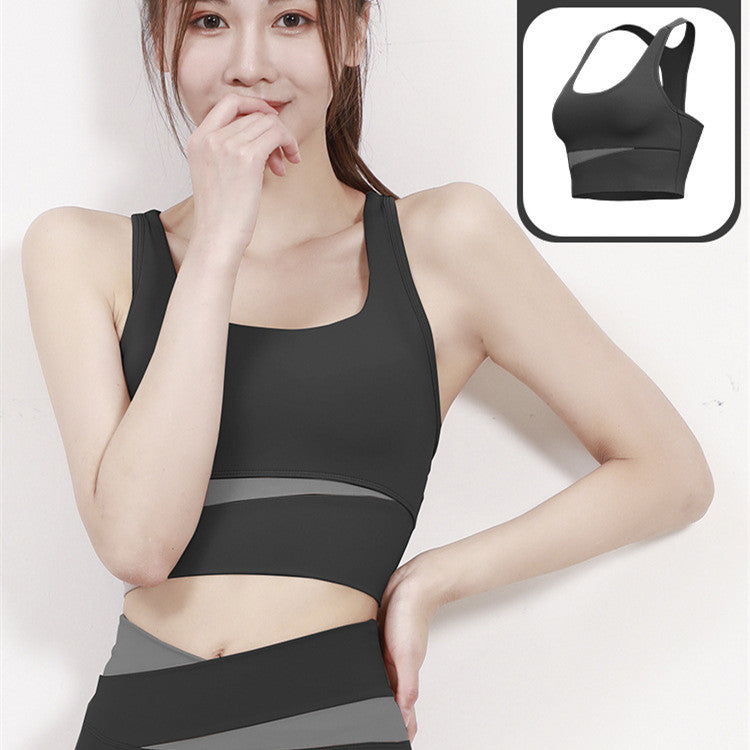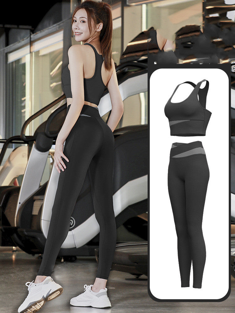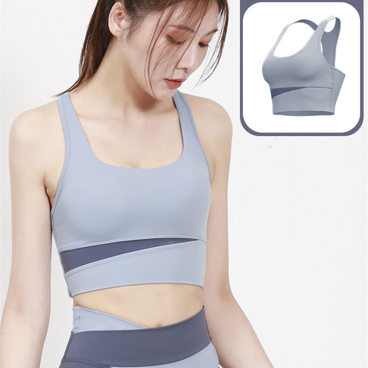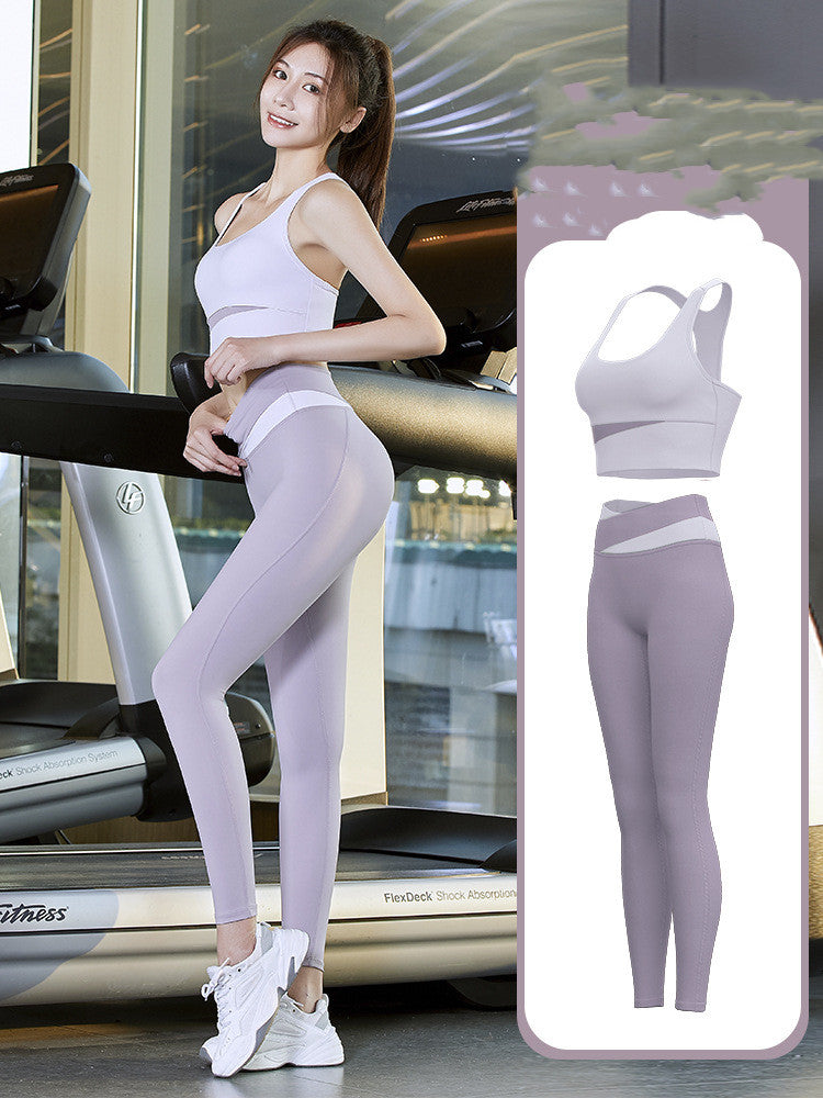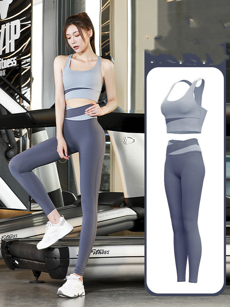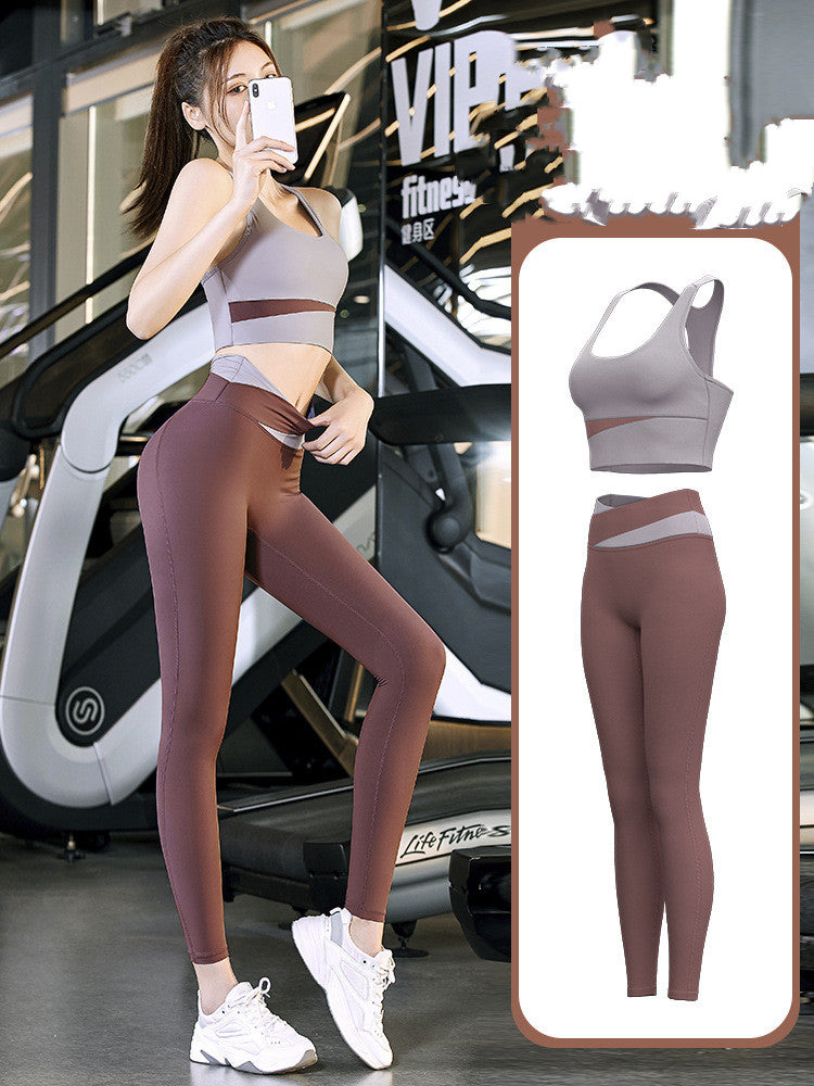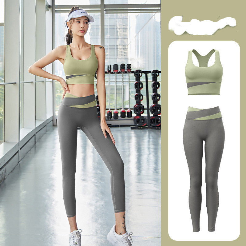 Women's Patchwork Contrast Sports Fitness Bra Leggings Set