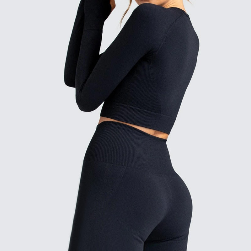 Workout Clothes For Women 7 Colors Seamless Yoga Set Sportwear Gym Set Long Sleeve Crop Top High Waist Sport Leggings Academic