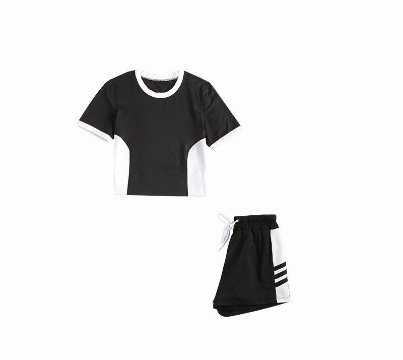 - Style E: black and white shorts + short sleeves + bra + trousers