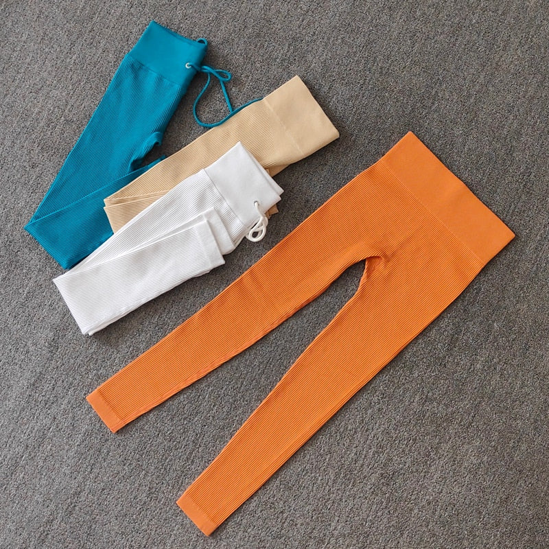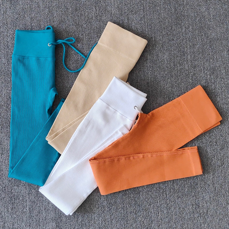 Yoga Pants Ribbed High Waist Gym Leggings Sport Tights Fitness Women Seamless Legging Tummy Control Athletic Leggins