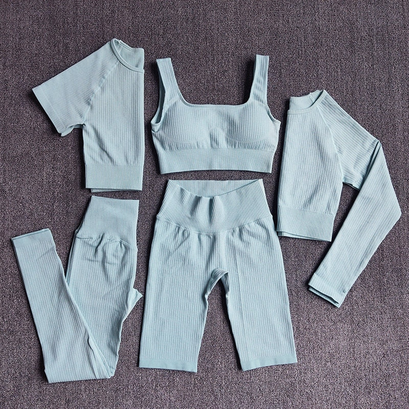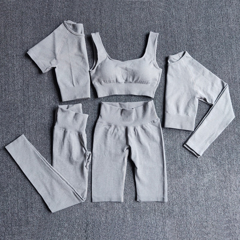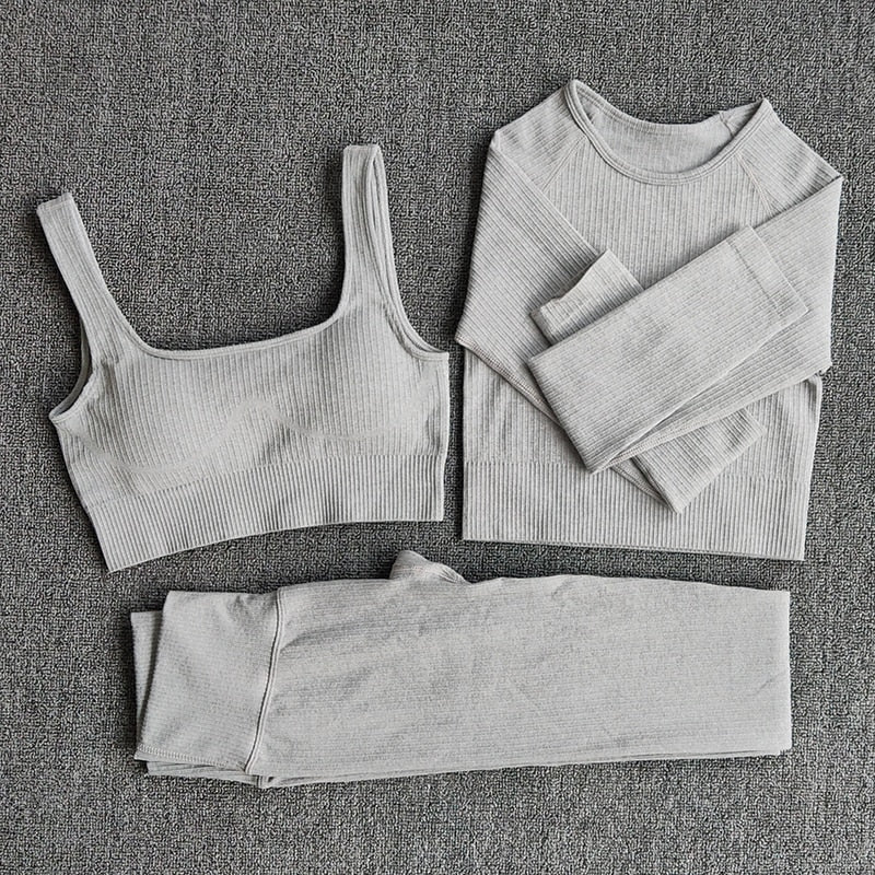 The set includes a seamless crop top, gym legging, and long sleeve sports suit, all available in solid or striped patterns to suit your style. Our sportswear features waterproof, eco-friendly, and quick-dry properties, making it perfect for any yoga enthusiast looking to enhance their practice.