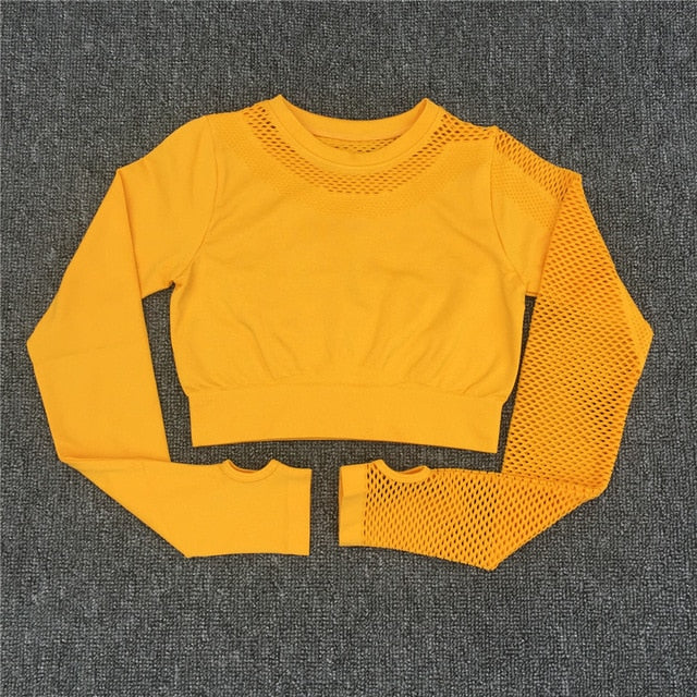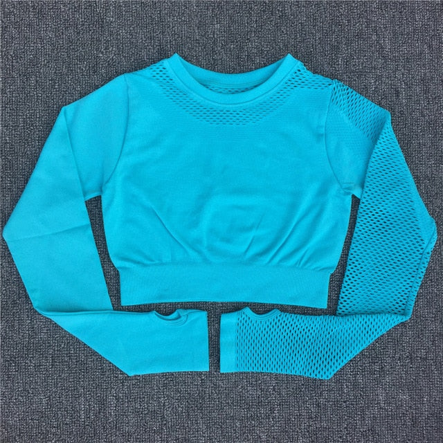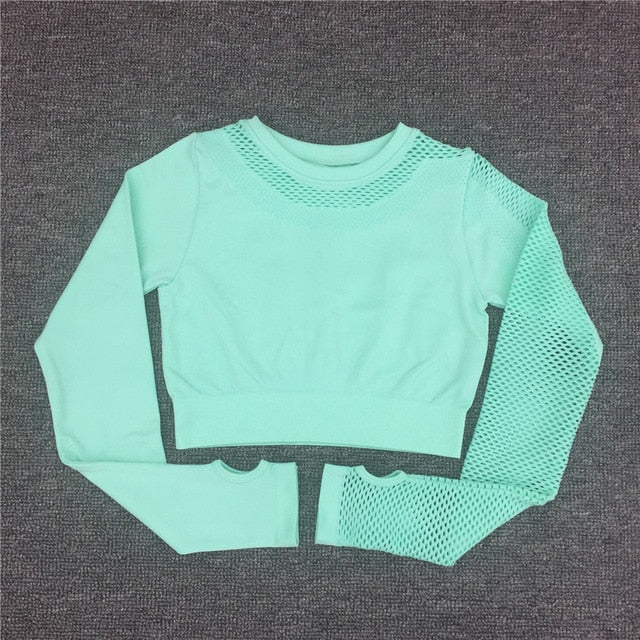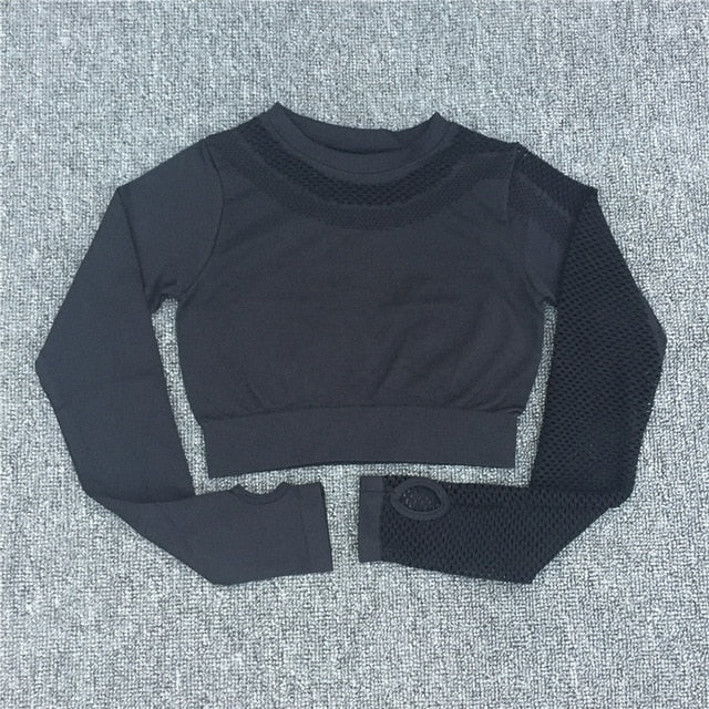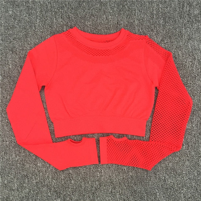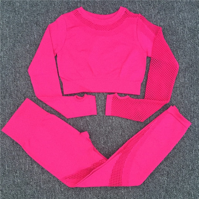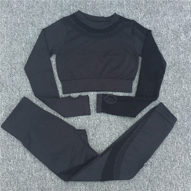Yoga Set Women Sport Suit Gym Clothes 2 Piece Seamless Hollow Out Fitness Long Sleeve Crop Top High Waist Workout Leggings