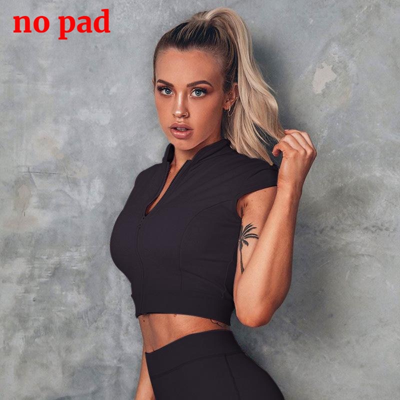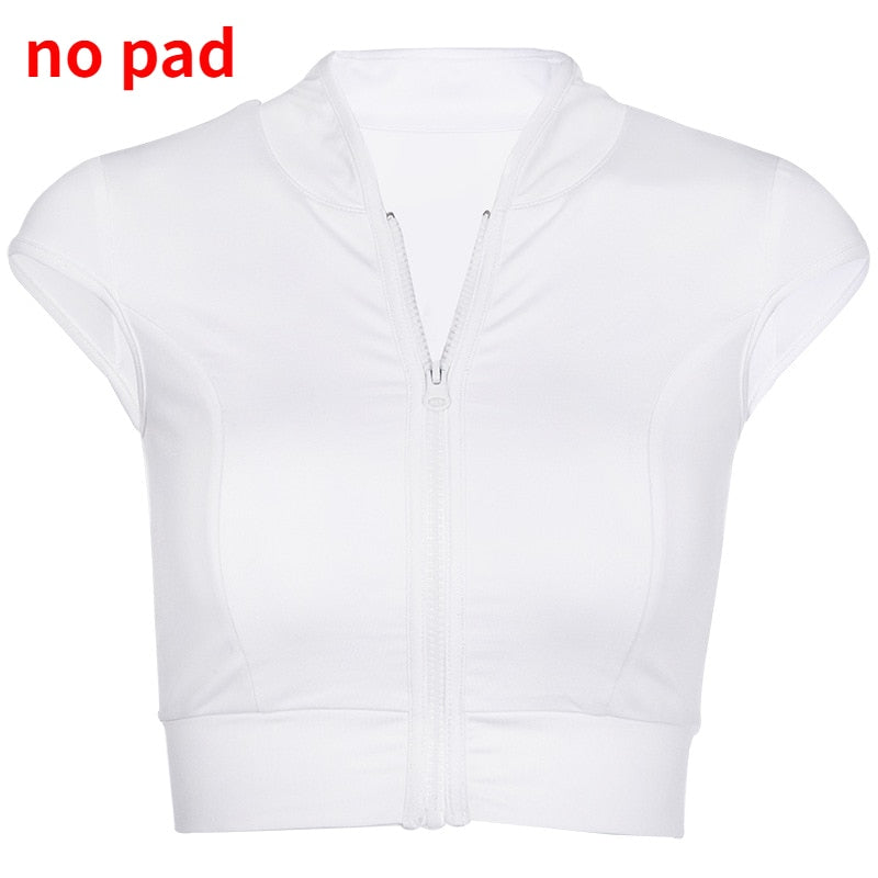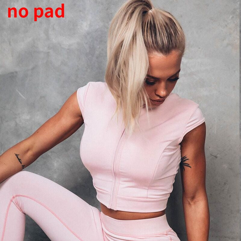 Yoga Sport Top with Zipper Women Workout Gym Top Fitness Shirt Sports T-shirt Vest Deportivo Mujer Femme White Black Pink