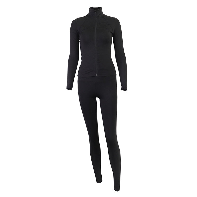 Yoga Suit Women Sportswear Long-Sleeved Top Cover Gym Training Suit Running Sports Suit Tight Leggings Fitness 2-Piece Suit