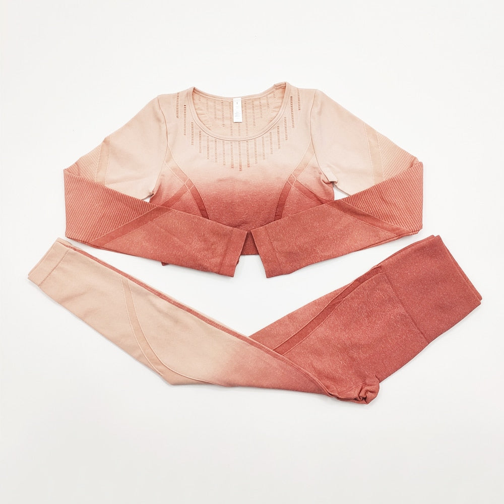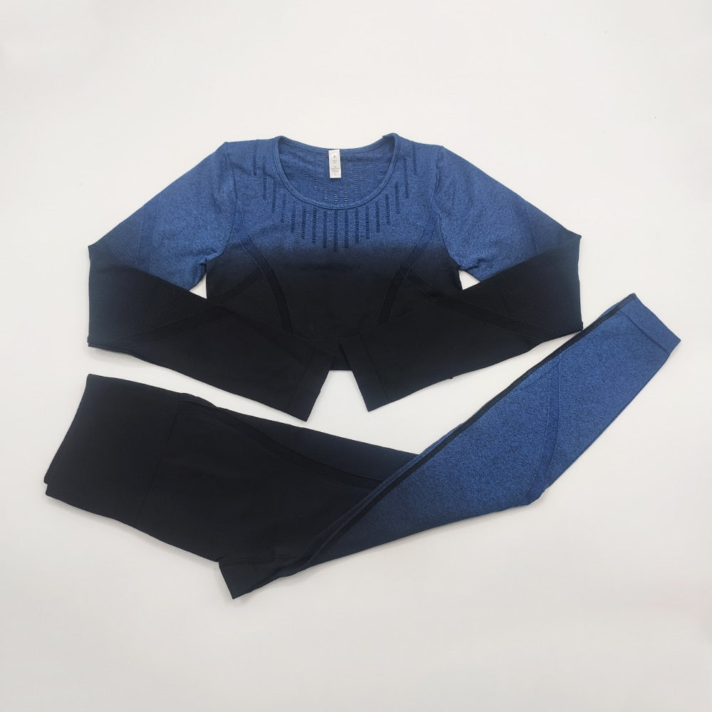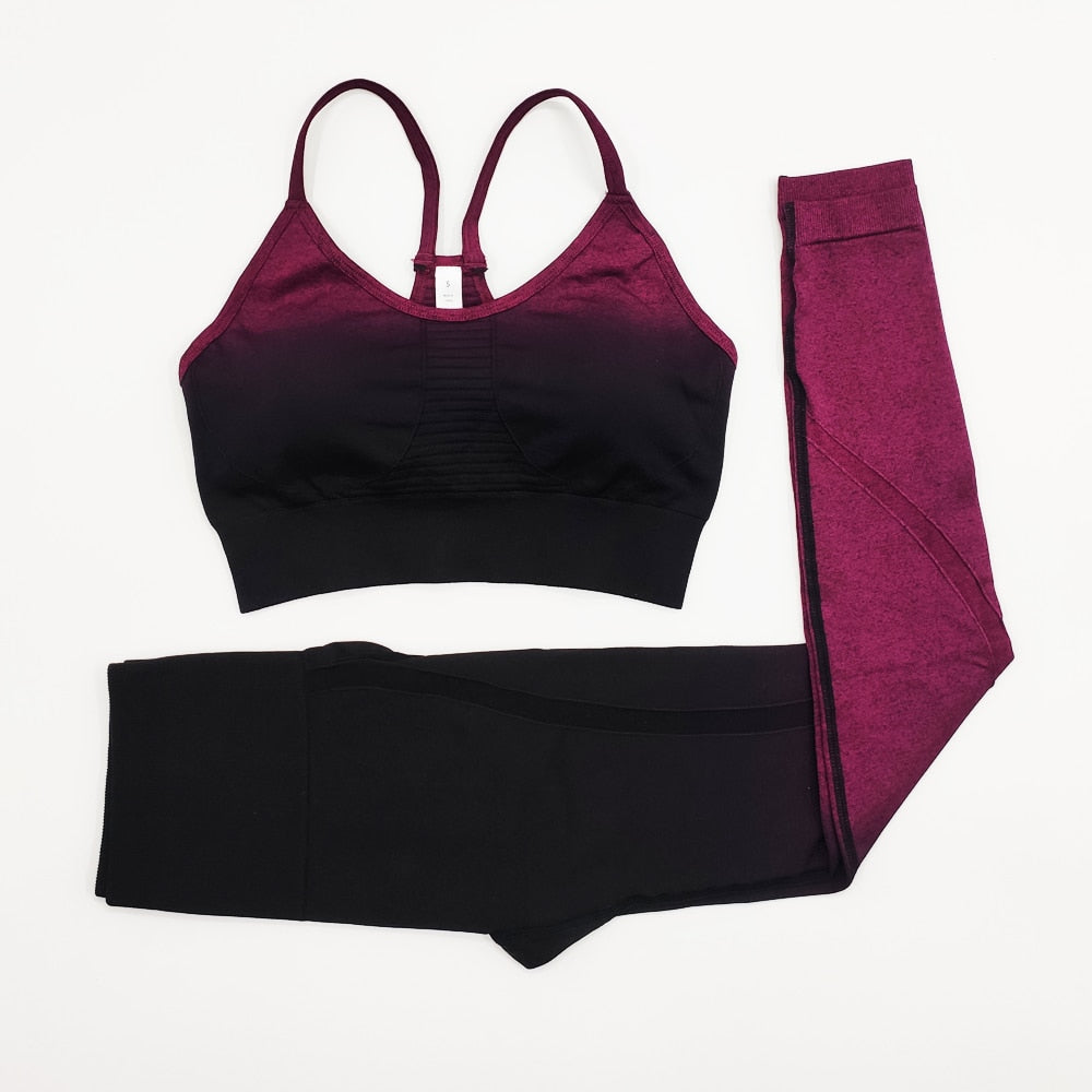 Yoga Tracksuits Women's Seamless Sets Fitness Sport Suits Gym Sportswear Crop Top High Waist Running Leggings Sports Bras