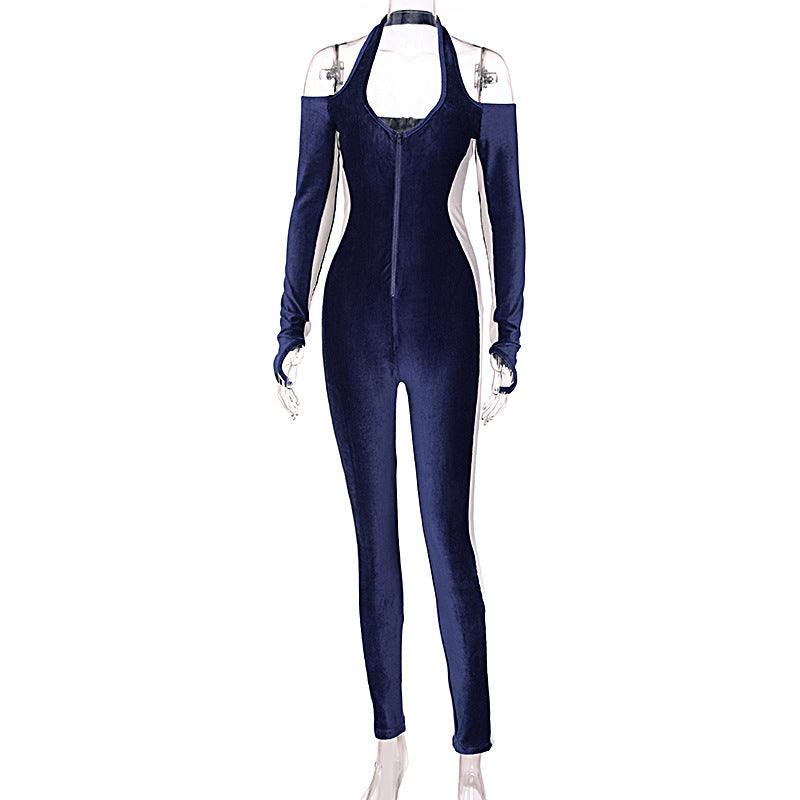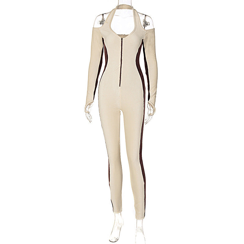 Zipper Hanging Neck Sports Fitness Jumpsuit Women's Clothing